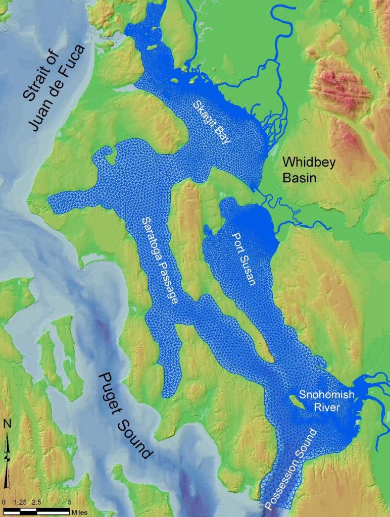As Pacific Northwest National Laboratory (PNNL) at the U.S. Department of Energy implemented numerous sub-basin scale models within Puget Sound over a period from 1997 through 2003, it became clear that simulation of hydrodynamic circulation and water quality in Puget Sound sub-basins would be best conducted using a region wide model to ensure accounting of inter-basin exchange and elimination of errors associated with boundaries in close proximity of the river plume mixing zones. However, accomplishing this goal using popular structured grid models was a challenge due to the complexity of the Puget Sound shoreline, with its deep bathymetry with steep side slopes and the presence of several mid-Channel Islands. By mid-2000s, finite volume methods became available and tools such as Finite Volume Coastal Ocean Model (FVCOM) with excellent mass conservation capability and the ability to operate in parallelized mode on a multi-processor Linux cluster made the objective of a Puget Sound-Wide Model attractive and feasible.